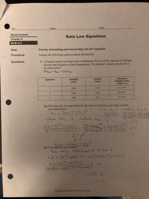 Solved Name Reinforcement Chapter 6 Blm 6 2 Rate Law Chegg Com